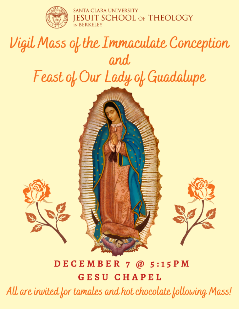 | Liturgy NewsOn Tuesday evening, December 7, at the 5:15 p.m. Mass, we will celebrate both the Vigil of the Solemnity of the Immaculate Conception of the Blessed Virgin Mary, as well as the Feast of Our Lady of Guadalupe. A group of children from St. Patrick’s Parish in Oakland will join us, and will present an enactment of the story of the apparitions of La Virgen de Tepeyac. All are invited for this Advent celebration, followed by a festive meal of tamales and Mexican hot chocolate, with a piñata for the children!