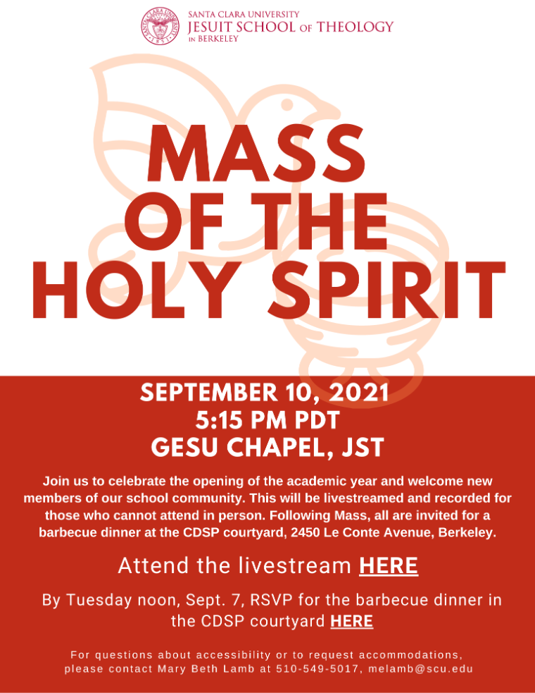 - Mass of the Holy Spirit: JST will celebrate the Mass of the Holy Spirit on Friday, September 10, 5:15 p.m. Please join us in person or on the livestream as we begin the new academic year.