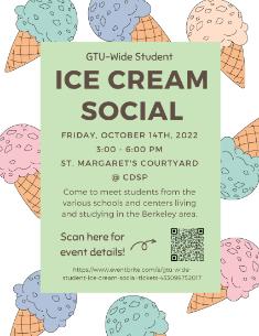 JST students are invited to come build relationships with other GTU students over ice cream on the afternoon of Friday, October 14. This event will be held in the courtyard at CDSP just down the street from JST. RSVP here!