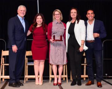 At the event, Latino Business Foundation Silicon Valley President and CEO Jesús Flores and Vice President and Board Member Angélica Flores presented MOBI a Special Recognition award. The inscription beautifully read, “For profoundly impacting the small business community. Thank you for being a cornerstone in our journey to success.” The recognition was received by Starbird, along with colleagues Jill Martin, Director, Operations and Communications, and Annasofia Zuleta, Operations and Communications Manager, as well as on behalf of Trish Kalbas-Schmidt, Partner and Curriculum Development, who was not able to attend. (Pictured left to right: Starbird, Zuleta, Martin, A. Flores, and J. Flores.)