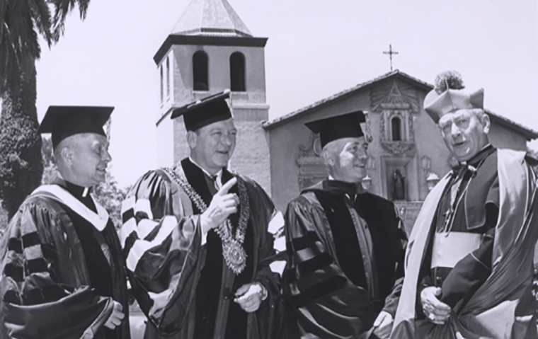Sources: Nadia Nasr, Santa Clara University Library Archives & Special Collections; Arthur Liebscher, S.J., Professor of History, Emeritus; Mary Johnson, University Protocol & Events; "The University of Santa Clara, A History, 1851-1977," by Gerald McKevitt, S.J.