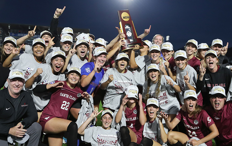 Santa Clara celebrates its 2020 national championship win over Florida State. The win marked Jerry Smith's second national title.