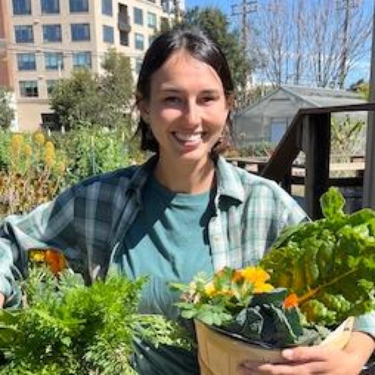 For the last six years Becca worked around the South Bay in sustainable agriculture and education. She's passionate about the connection between the land, sustainability, and community. Becca has worked as a garden teacher, an animal care manager, a farmhand, a forest school teacher, and a volunteer coordinator. She started at Santa Clara in March 2022 and is thrilled to be managing the Forge Garden, educating about sustainable food production, and working with students. As a kid she frequently came to the SCU campus for different events and is happy she found her way back to the Santa Clara campus as the Sustainable Food Systems Program Manager.
