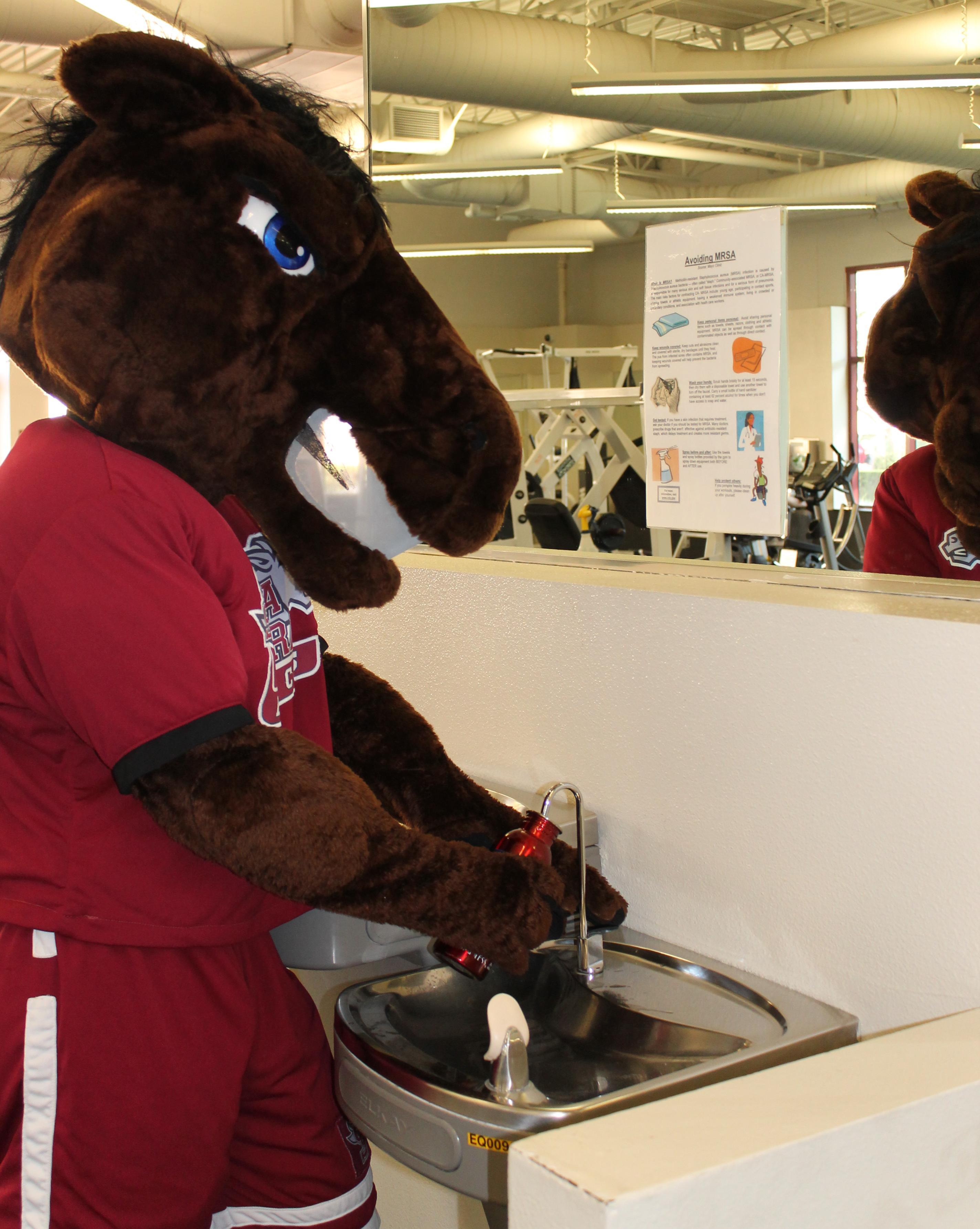 Water fountains and goose-neck fillers (which allow you to fill a water bottle while holding it upright) are located throughout campus. View an online campus map to see marked "Water Filling Stations."