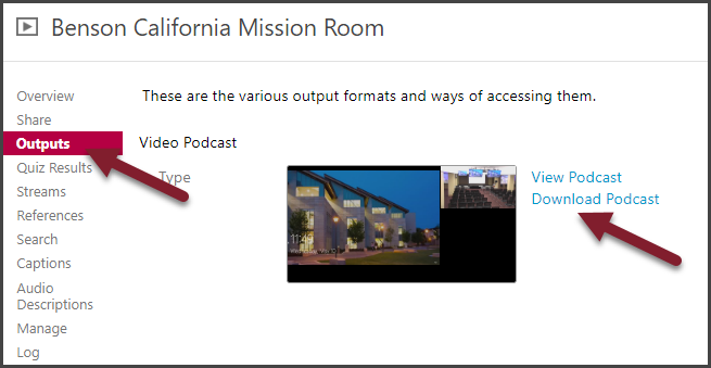 - Click the Output tab located on the left side of the pop-up window, then click Download Podcast to download you video. Your video will be downloaded to your computer's default Download Folder.